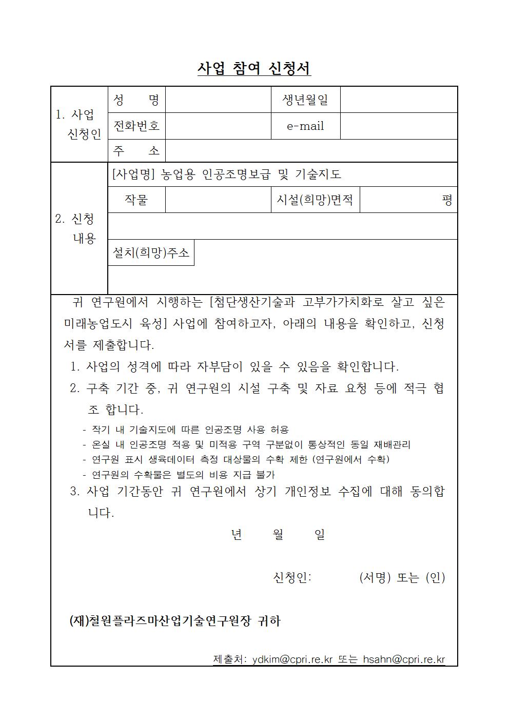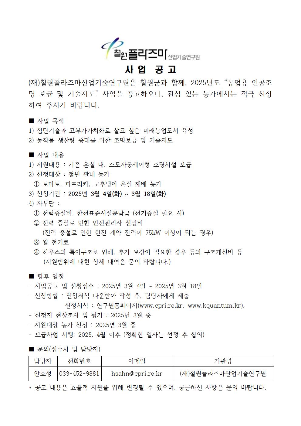 제 목 : [2025년도 “농업용 인공조명 보급 및 기술지도"] '첨단생산기술과 고부가가치화로 살고 싶은 미래농업도시 육성'을 위한 2025년 기술보급 사업공고