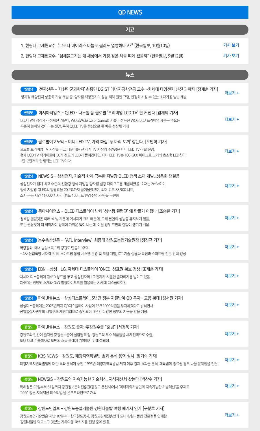 제 목 : 2020년도 10월호 퀀텀닷 뉴스레터